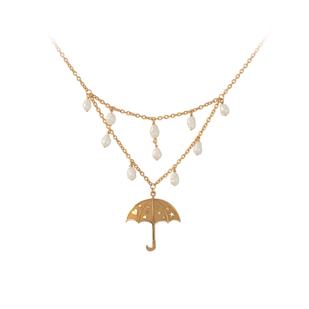 Colar Guarda Chuva em Prata 925 com Banho de Ouro e 10 Pérolas de Água Doce.